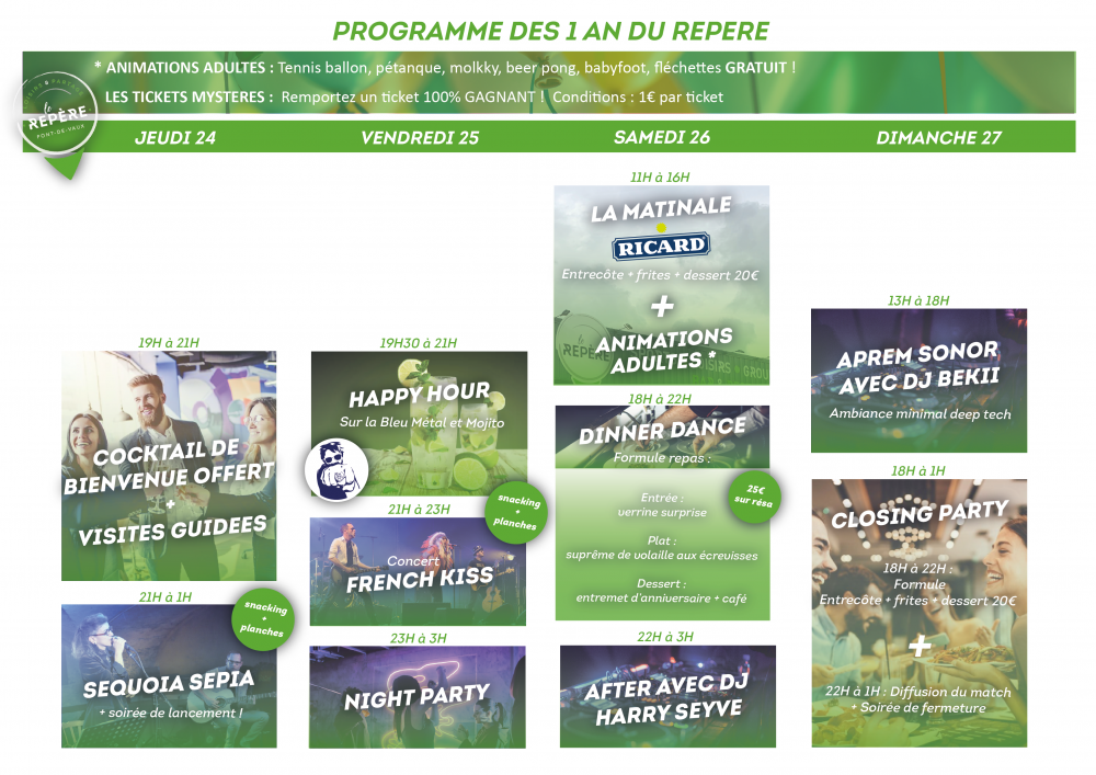 Pour les 1 an du Repère proche de Pont-de-Vaux, nous organisons une multitudes d’événements sur 4 jours du jeudi 24 au dimanche 27 février :